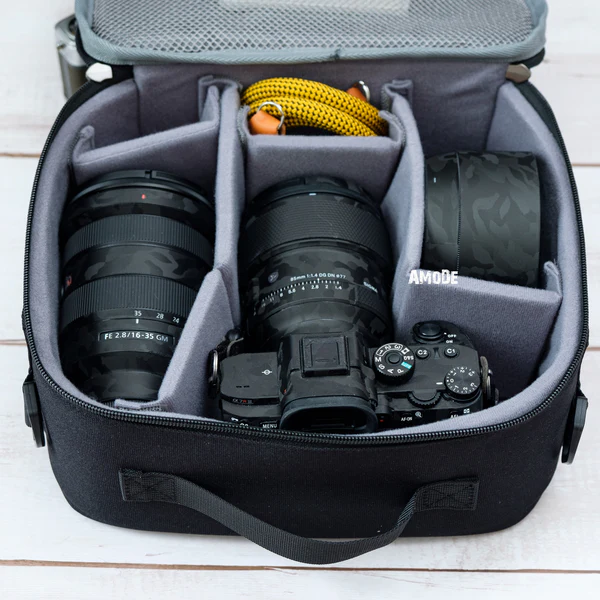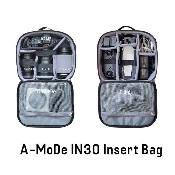 The A-MoDe IN30 camera insert is designed for photographers who need a lightweight, protective, and versatile solution for carrying their gear. Made with 900D water-repellent fabric and 7mm EVA shockproof padding, these inserts keep your camera and lenses safe from bumps, drops, and moisture while on the go.