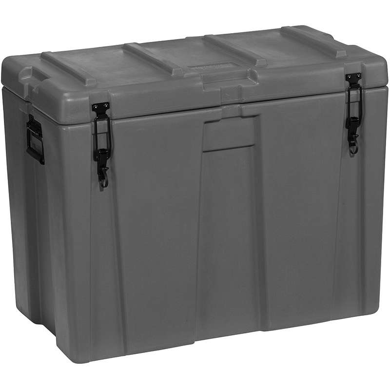 Pelican Spacecase storage and transport containers are moulded from UV stabilised food-grade polyethylene plastic and are dust, oil, chemical and water resistant. They are made military tough and are proudly designed and manufactured in Australia. Interlocking male/female ribs are integrated for secure non-slip stacking on matched size cases.